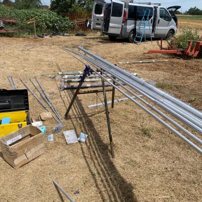 HA8TA: Mindenkinek megvolt a maga feladata. Először a yagi került összeszerelésre, majd mikor állt az árbóc, a forgatóval együtt rátettük. Ezután a dipólokat, majd a GP-t alkottuk meg. Mikor ezek kész voltak addigra már nagyon megéheztünk, anyukám hozott egy pár szendvicset, mert itthon még készült az ebéd. Folytatásképpen beüzemeltük az automata antennakapcsolót, majd miután behangoltuk az antennát kezdődhetett az árbóc kitolása. És ahogy Peti bá tekerte ki a motorral az oszlopot kimagasodott a semmiből és már az elkerülő útról is látni lehetett a gyönyörű antennaparkot. Miután elkészült az állomás, kipróbáltuk, ami nagyon tetszett és örültem, hogy egy pár hétig ilyen szuper QTH-ról gyárthattam a DX-eket. Jól elhúzódott a szerelés este 6-7-re lettünk kész, mikorra már minden rendben volt. A szorgos munka után az elfáradt csapat felkerekedett és indultunk haza vacsorázni. Közben jót beszélgettünk, sztorizgattunk. Nagyon jól telt a nap, de Csabáéknak indulni kellett haza.