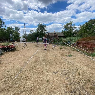 HA8TA: Mikor fent voltam Csabánál versenyezni, akkor került szóba, hogy hoznak le ideiglenesen egy antennát, amivel el tudok indulni a VB-n. Szerencsére ez nagyon hamar megvalósult. Egy héttel a verseny előtt szólt, hogy jönnek és felállítjuk az antennát. Az esemény napjának kezdetén HA9AX Imre ért ide elsőként és indultunk a tanyánkra, ami közel van a városhoz, akkorra odaért Csaba, Tomi 8RT és Peti bá 8DU is. Birtokba vettük a tanyát, addigra odaért HG8CK Attila is. Kiválasztottuk a legmegfelelőbb helyet az árbóc állításához és kezdetét vette a munka.